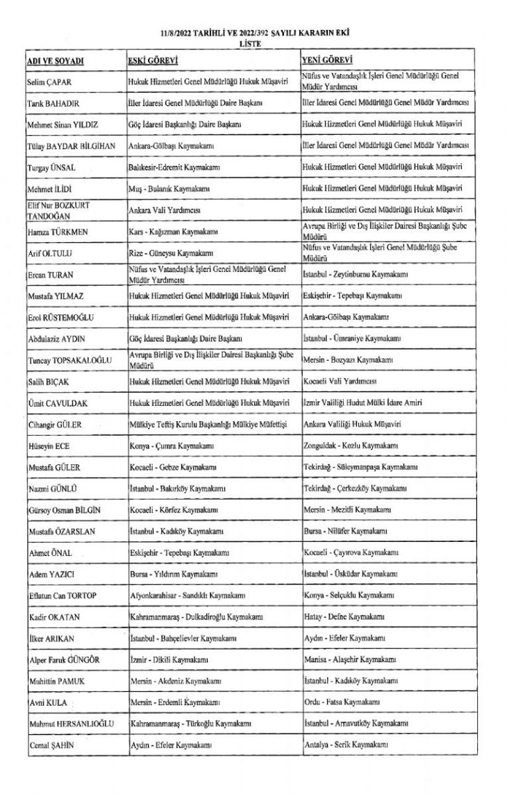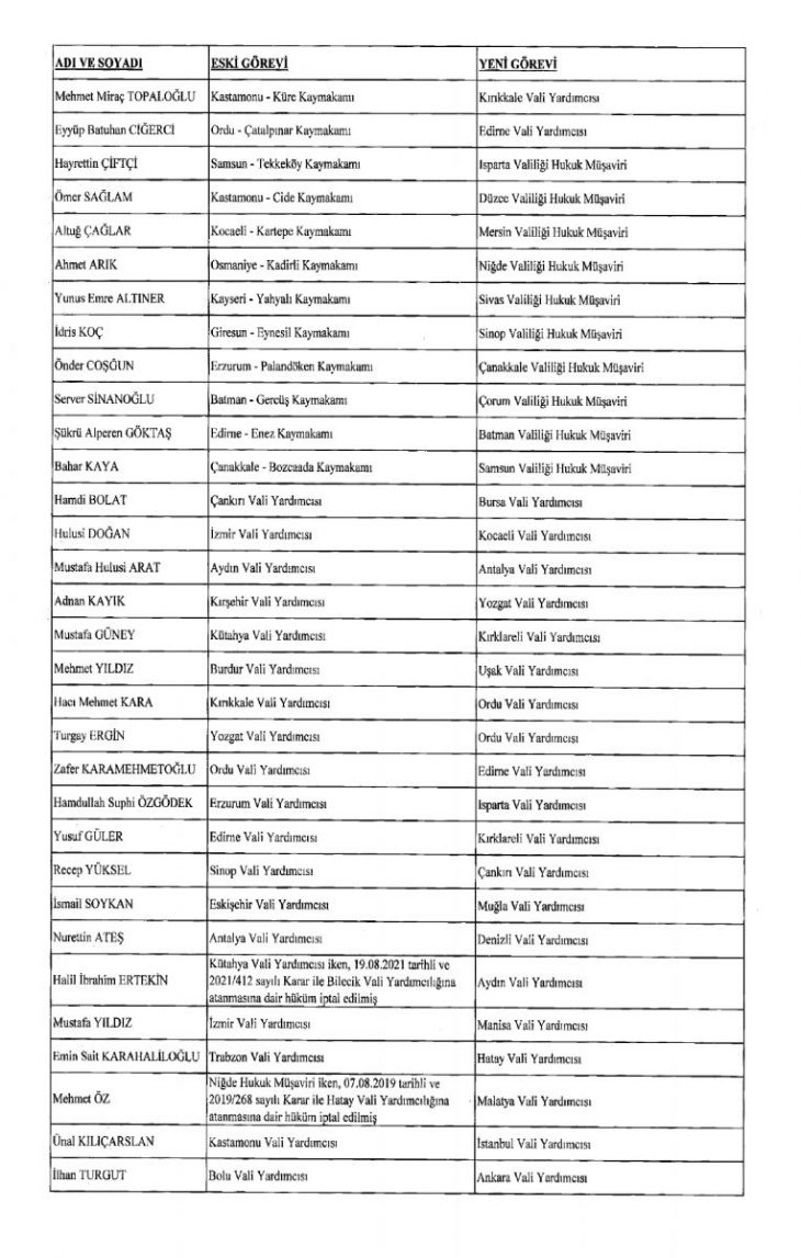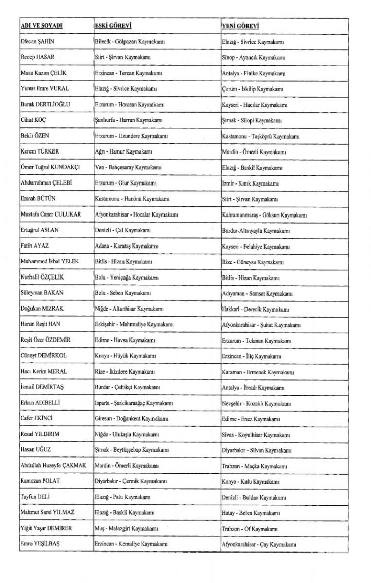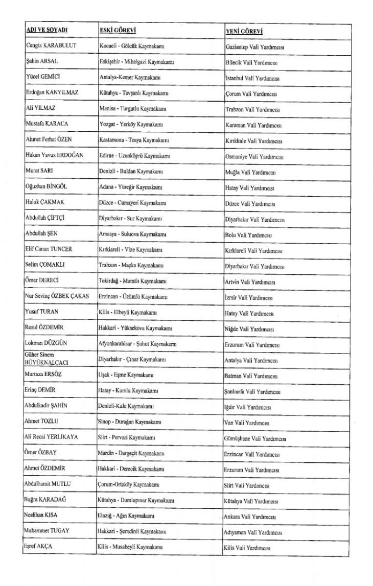 İstanbul'da 12, Ankara'da 4, İzmir'de ise 10 kaymakamın görev yerleri değiştirilirken, kayyumluk görevi de icra eden kaymakamlardan 12'si farklı görevlere atandı, yerlerine yeni kaymakamların ataması yapıldı.