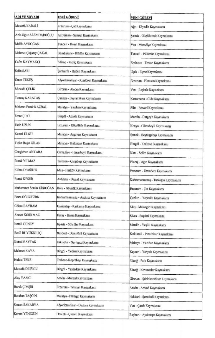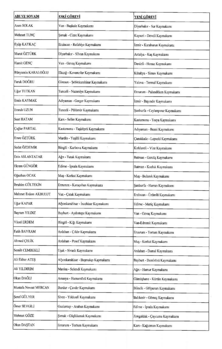Doğu ve Güneydoğu Anadolu bölgelerinde atamaya tabi tüm ilçelere kaymakam ataması gerçekleştirilirken bu bölgelerde tayine tabi olan vali yardımcıları, kaymakamlar ve özellikle kayyumluk görevi icra edenler daha üst görevlerde değerlendirildi.