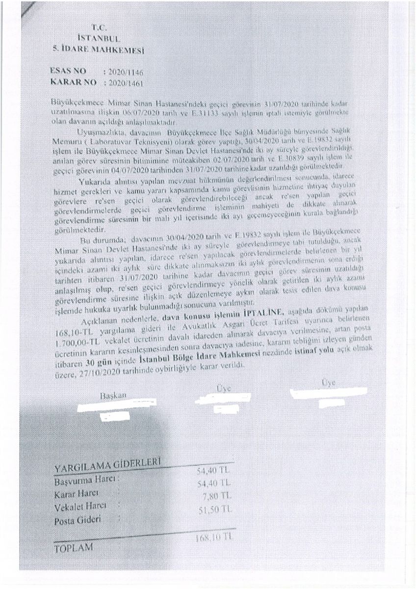 Davayı görüşen İstanbul 5. İdare Mahkemesi verdiği kararda geçici görevlendirmelerin bir mali yılda 2 ayı geçemeyeceğine dikkat çekti.