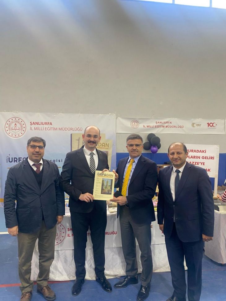 Akçakale kitap fuarında Şanlıurfa İl Millî Eğitim müdürlüğü standını Şanlıurfa Vali yardımcısı Ahmet Fatih Sungur ve İl Millî Eğitim Müdürü Asım Sultanoğlu da ziyaret ederek kitaplarını Gazze’ye bağışlayan yazar öğretmenlere teşekkür ettiler.