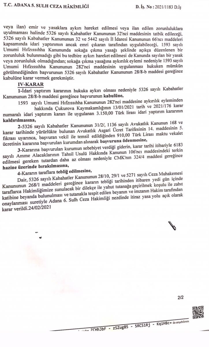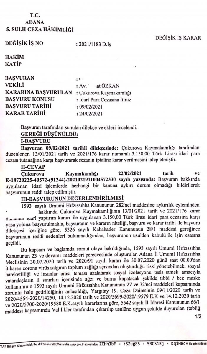 Sokağa Çıkma Cezasına İtiraz Dilekçesi