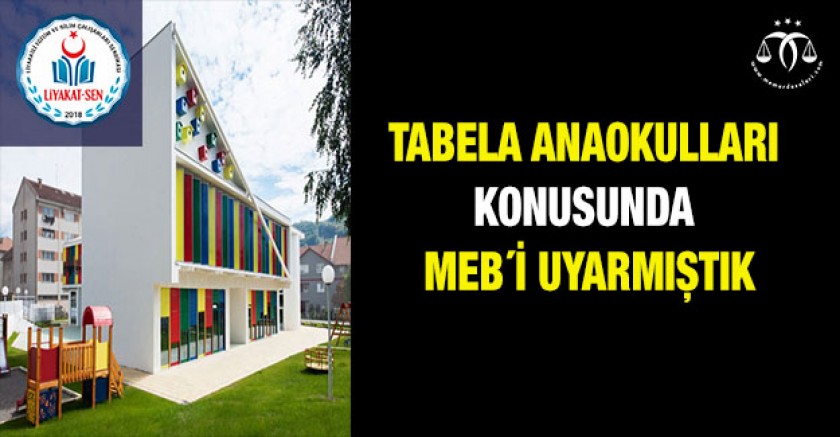 Genel Merkez Yönetim Kurulumuzun 20.04.2023 tarihli "Tabela Anaokulları ve Öğretmen Kontenjanları" konulu basın açıklamasında ilk ve ortaöğretim kurumları bünyesindeki anasınıflarının bağımsız anaokuluna dönüştürülmesini hususunu "Hali hazırda okul öncesi eğitimi veren okul binalarına yeni bir tabelanın asılması bu suretle de anaokullarının yeni açılmış gibi düşünülmesi kamuoyu nezdinde dezenformasyona neden olmakla birlikte okul müdürlüklerimizin iş yükünü de arttırmaktadır." ifadeleriyle eleştirmiş ve bakanlığımızı uyarmıştık.
