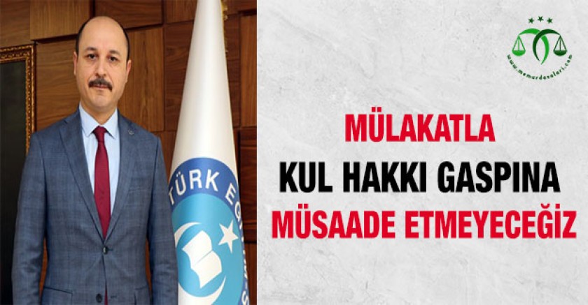 Unutulmamalıdır ki, Türk Eğitim-Sen mülakatı tümüyle reddeden, mülakatla beslenen anlayışın karşısında yer alan ve mülakatla ilgili her konuyu yargıya taşıyan bir sendikadır. Dolayısıyla yayınlanacak yönetmeliğe ‘mülakat’ hususu eklenir ise, çekinmeden bir kez daha yargı hakkımızı kullanırız! Mülakatın bu güzel ülkeye, aydınlık geleceğimize yarardan çok zararı olduğu görülmüştür. Yıllardır mülakatla iş başına gelen yöneticiler nedeniyle okullarımızda başarı düşmüş, çalışma barışı bozulmuş, yandaşlar kayırılmış ve alın terinin yerini torpil almıştır. Bu gidişe ‘dur’ demek yerine yeniden bu gidişi ‘destekleyen’ yaklaşımlara müsaade etmemiz mümkün değildir.