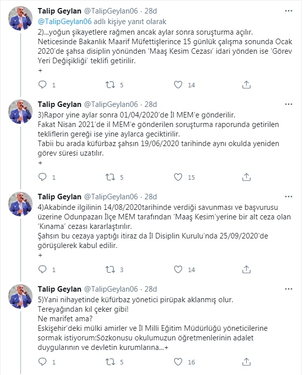 Hukukun üstünlüğünü ve öğretmenlerimizin saygınlığının korunmasının gerekliliğine inanan bizler bu iddiaların doğru olmamasını diliyoruz. İşte Sayın Talip GEYLAN'ın paylaşımları...