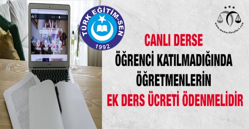 Türk Eğitim Sen olarak Milli Eğitim Bakanlığı’na gönderdiğimiz yazıda uzaktan eğitim yöntemiyle gerçekleştirilen canlı derslere öğrencinin katılmadığı durumlarda öğretmenlerin ek ders ücretlerinin kesilmemesi gerektiği yönünde valiliklere talimat verilmesini talep ettik." açıklamasında bulundu.