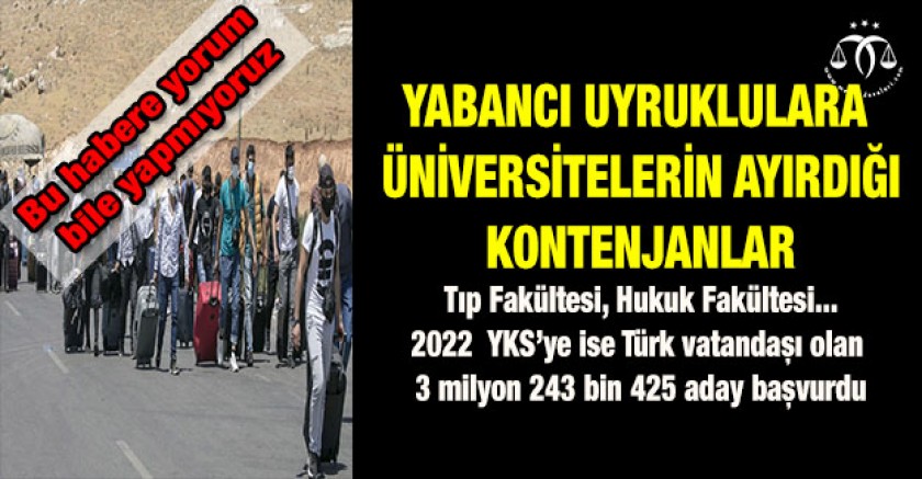 Uludağ Üniversitesi; yabancılar için Tıp Fakültesine 51 öğrenci, Hukuk Fakültesine 38 öğrenci kontenjanı ayırmıştır. Türk hukukunu öğrenen yabancı uyruklu kişi kendi ülkesinde Türk Hukuku uygulamayacağına göre bu kadar kontenjan neden ayrılmıştır? Buradan çıkan sonuç Türkiye Cumhuriyeti vatandaşlığına geçecekleridir.