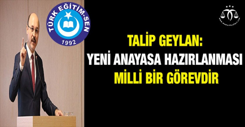 Anayasa hazırlanmasının artık herkes için milli bir görev olduğuna dikkat çeken Genel Başkan Talip Geylan, "Ülkemizi 21. yüzyılın koşullarına hazırlayan, Türkiye’mizi devletimizin kurucusu büyük Atatürk’ün işaret ettiği muasır medeniyetler seviyesine taşıyan, Türk milletinin kültür zenginliğini yansıtan ve koruyan, temel hak ve hürriyetleri tam manasıyla teminat altına alan ve özellikle milli mutabakatla vücut bulan bir Anayasa hazırlanması artık herkes için milli bir görevdir." dedi.