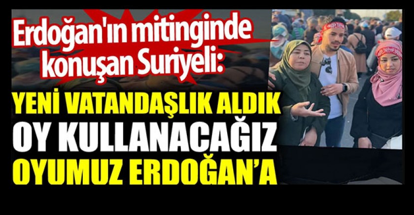 Yeni vatandaşlık aldık, Erdoğan'ı Suriye'deyken de seviyorduk, bu sene ilk defa oy vereceğiz, ilk oyumuz Erdoğan'a. Müslüman bir adam. Recep Tayyip Erdoğan’a teşekkür ediyoruz. "