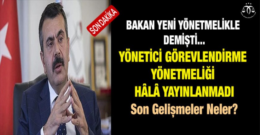 Sayın Bakan Yusuf TEKİN'in açıklamasına rağmen yeni yönetici görevlendirme yönetmeliği yayımlanmadı öyle ki yönetici görevlendirme takvimi açıklanmasına rağmen ve Sayın Bakanın bizzat kendisinin yeni yönetmelikle yapılacak açıklamasına rağmen...