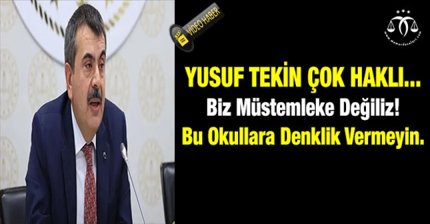Evet, izlediğiniz gibi Milli Eğitim Bakanı Prof. Dr. Yusuf Tekin bu konuda yerden göğe kadar haklı. Çözümü ise basit bu okullara denklik vermeyin ya da YÖS kılavuzuna madde olarak bu iki okulu işleyin ve bu okul mezunlarının YÖS sınavına giremeyeceğini belirtin.